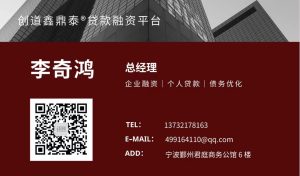 创道鑫鼎泰贷款融资平台深耕宁波金融市场多年,凭借深厚的银行合作网络和专业的金融知识,为客户提供全方位的抵押贷款解决方案。